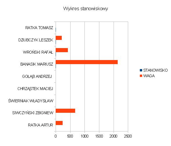 Wykres graficzny wyników w zależności od zajmowanych stanowisk